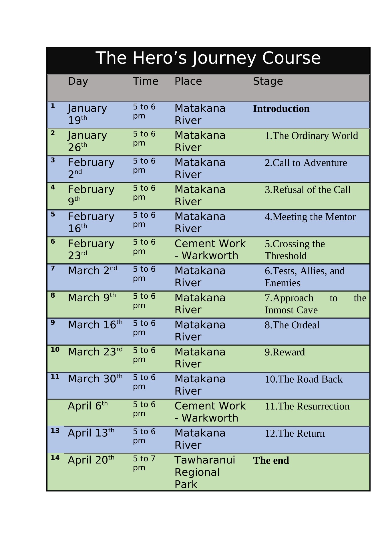 The course is divided into 14 individual lessons. Each lesson will be held weekly; the duration of each study will be one hour. Each participant must make a sincere commitment to participate in all classes. The course's participation is linked to personal responsibility. There is no obligation to attend the classes, but maintaining promises and obligations is part of the Hero's Journey.